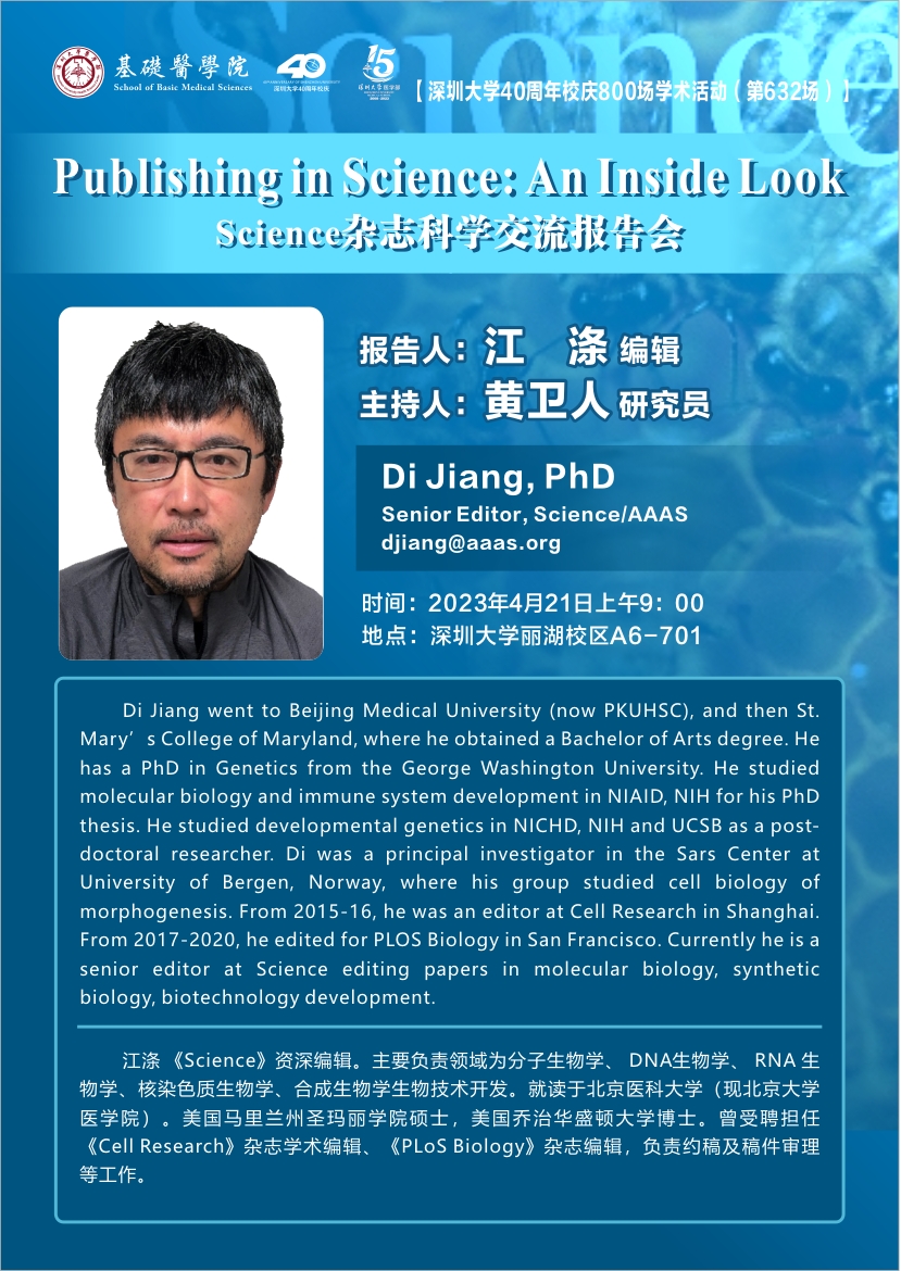 【好色tv 40周年校庆800场学术活动(第632场】Science杂志科学交流报告会 Publishing in Science: An Inside Look