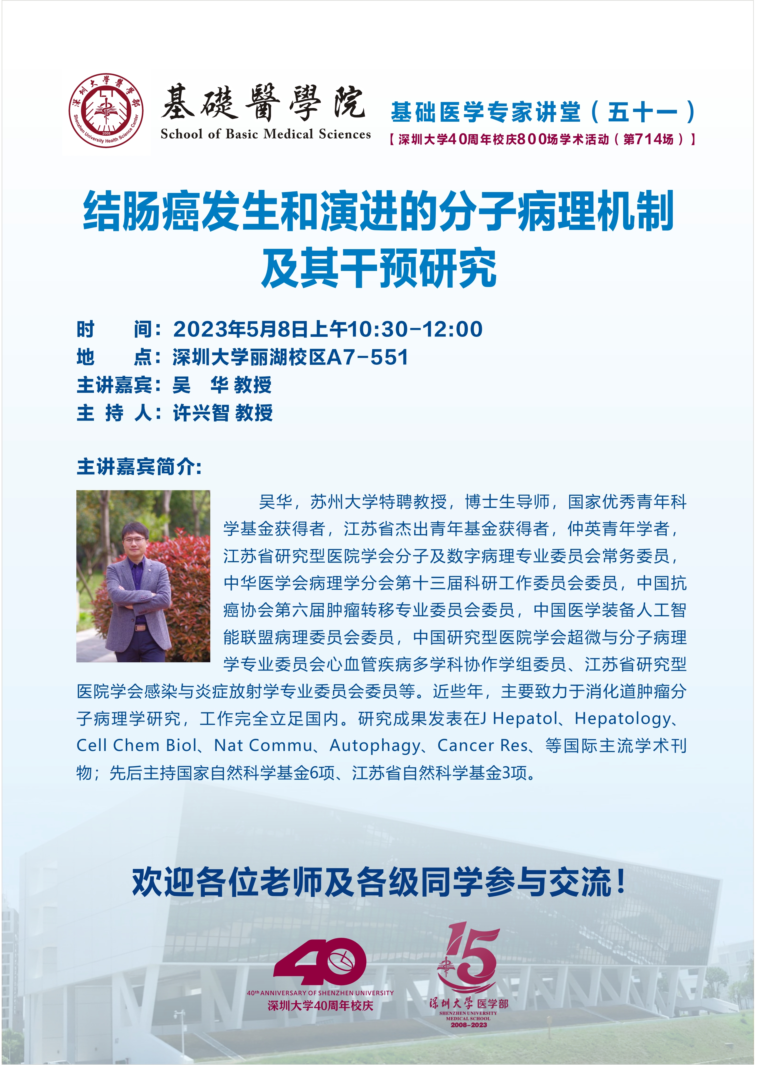 【好色tv 40周年校庆800场学术活动(第714场)+基础医学专家讲堂(五十一)】:结肠癌发生和演进的分子病理机制及其干预研究