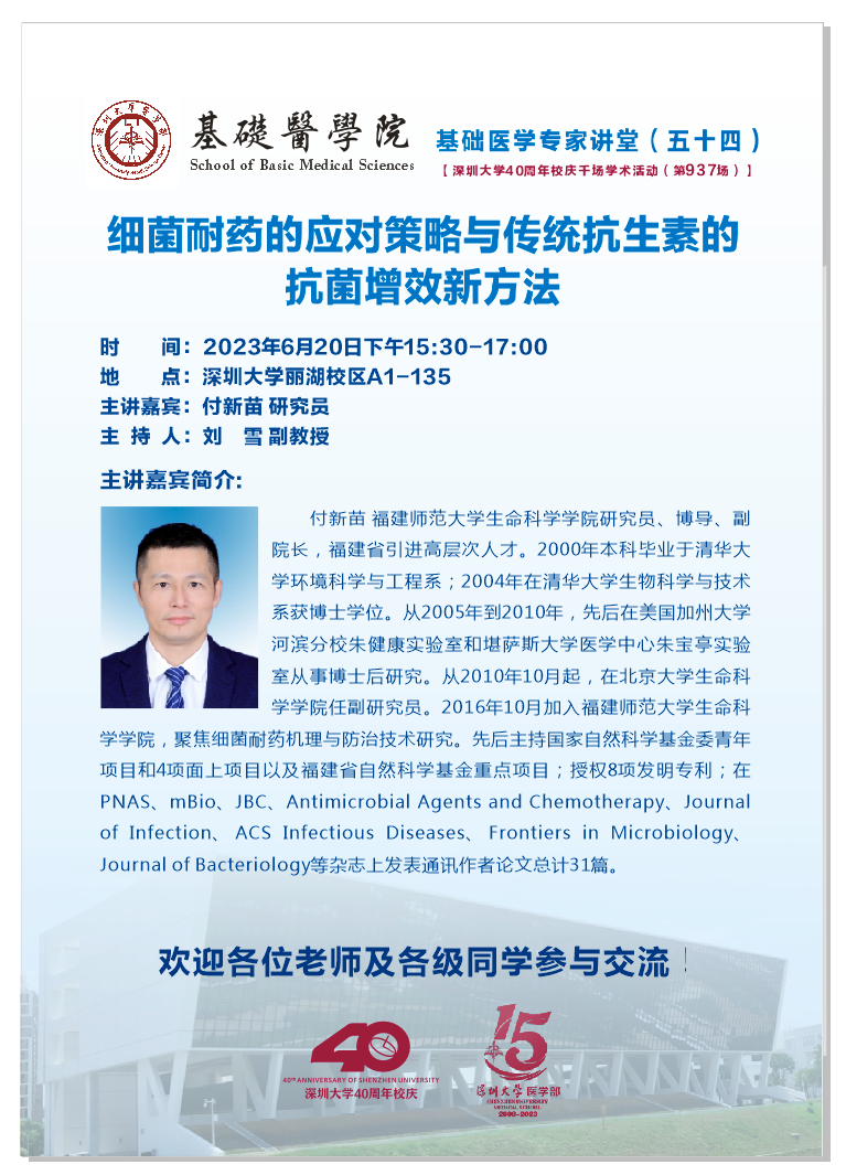 【好色tv 40周年校庆千场学术活动(第937场)+基础医学专家讲堂(五十四)】:细菌耐药的应对策略与传统抗生素的抗菌增效新方法