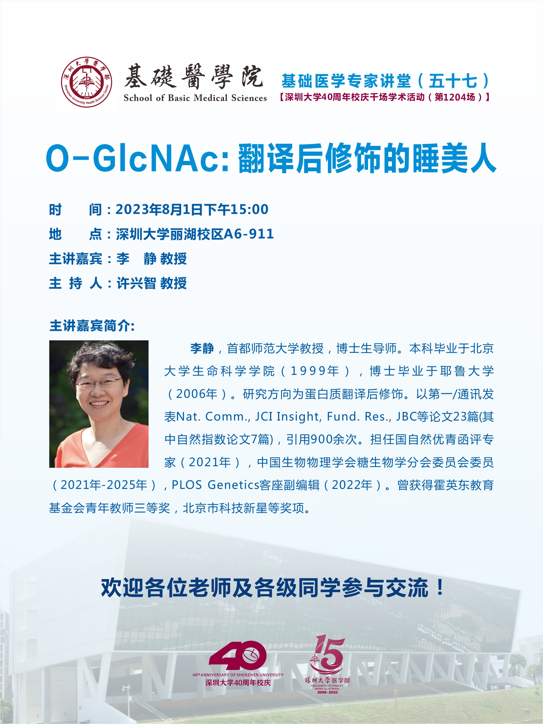 【基础医学专家讲堂(五十七)】: O-GlcNAc: 翻译后修饰的睡美人
