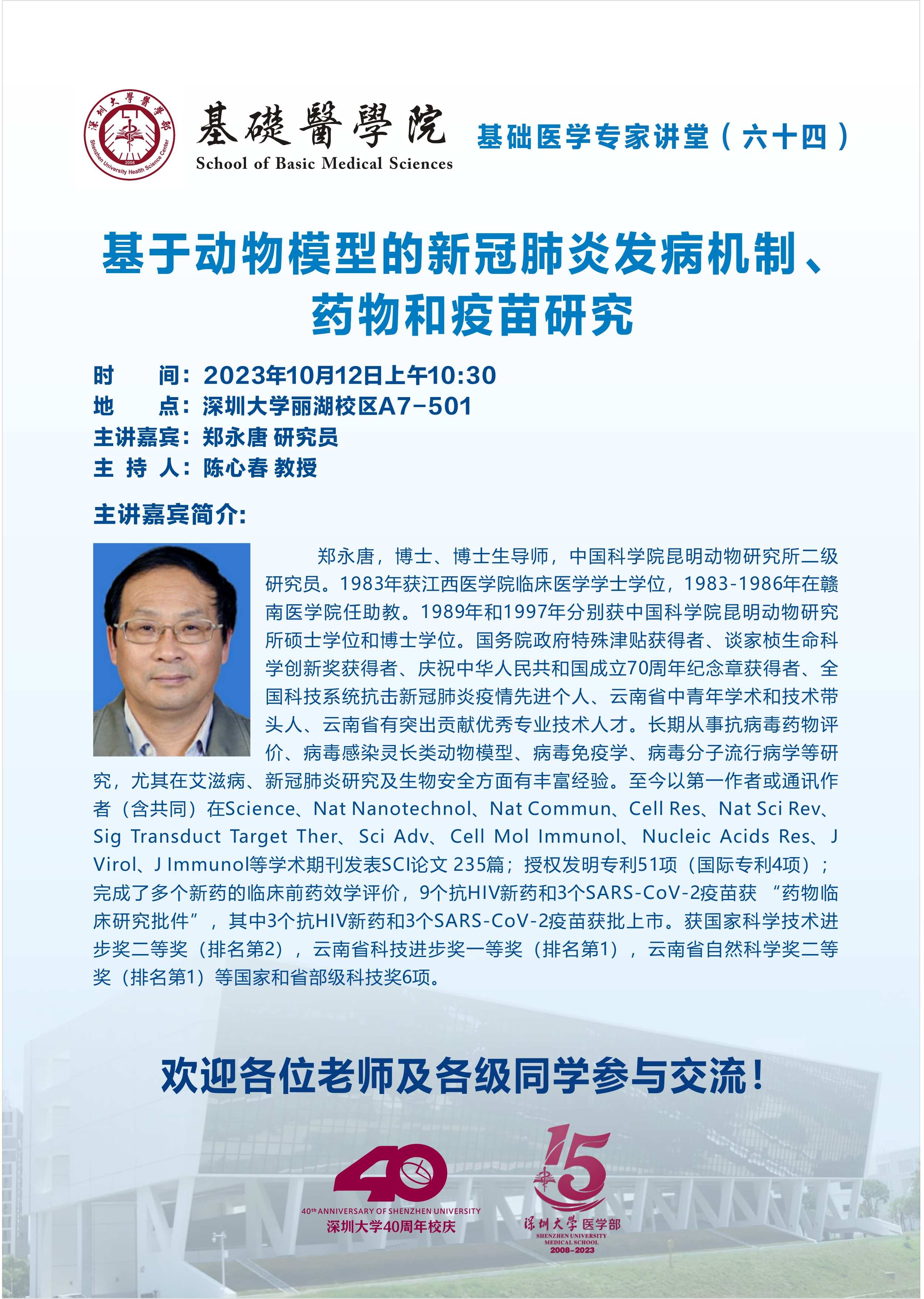【基础医学专家讲堂(六十四)】基于动物模型的新冠肺炎发病机制、药物和疫苗研究