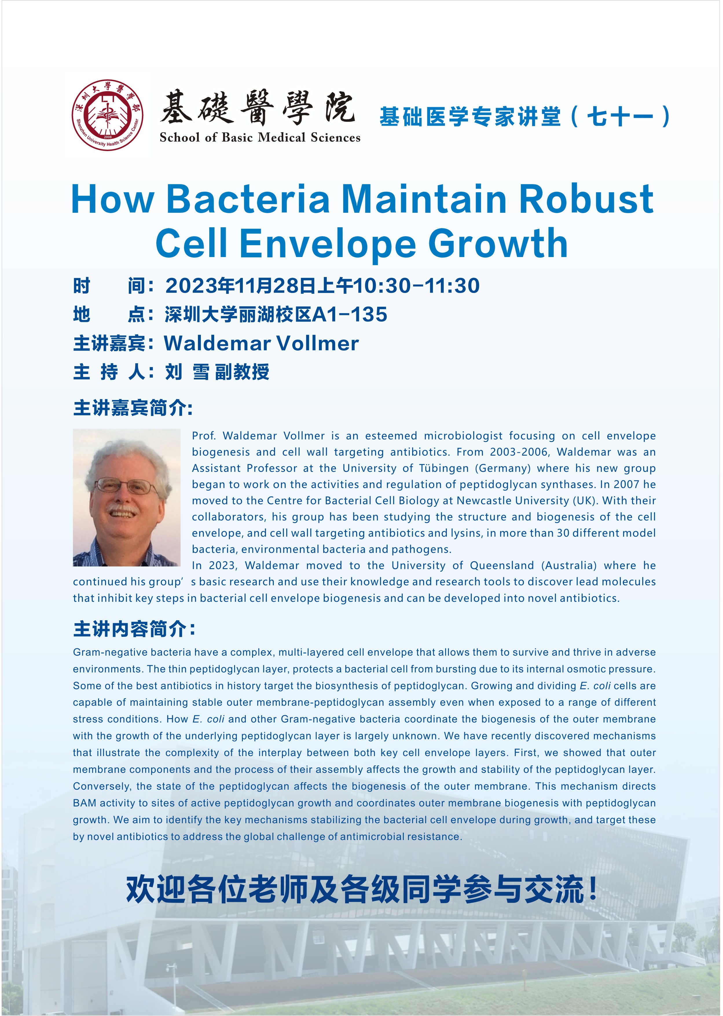 【基础医学专家讲堂(七十一)】How Bacteria Maintain Robust Cell Envelope Growth 发布时间:2023-11-28 点击数: 次 【字体:小 大】 点赞 收藏 分享到: 打印正文 关闭本页