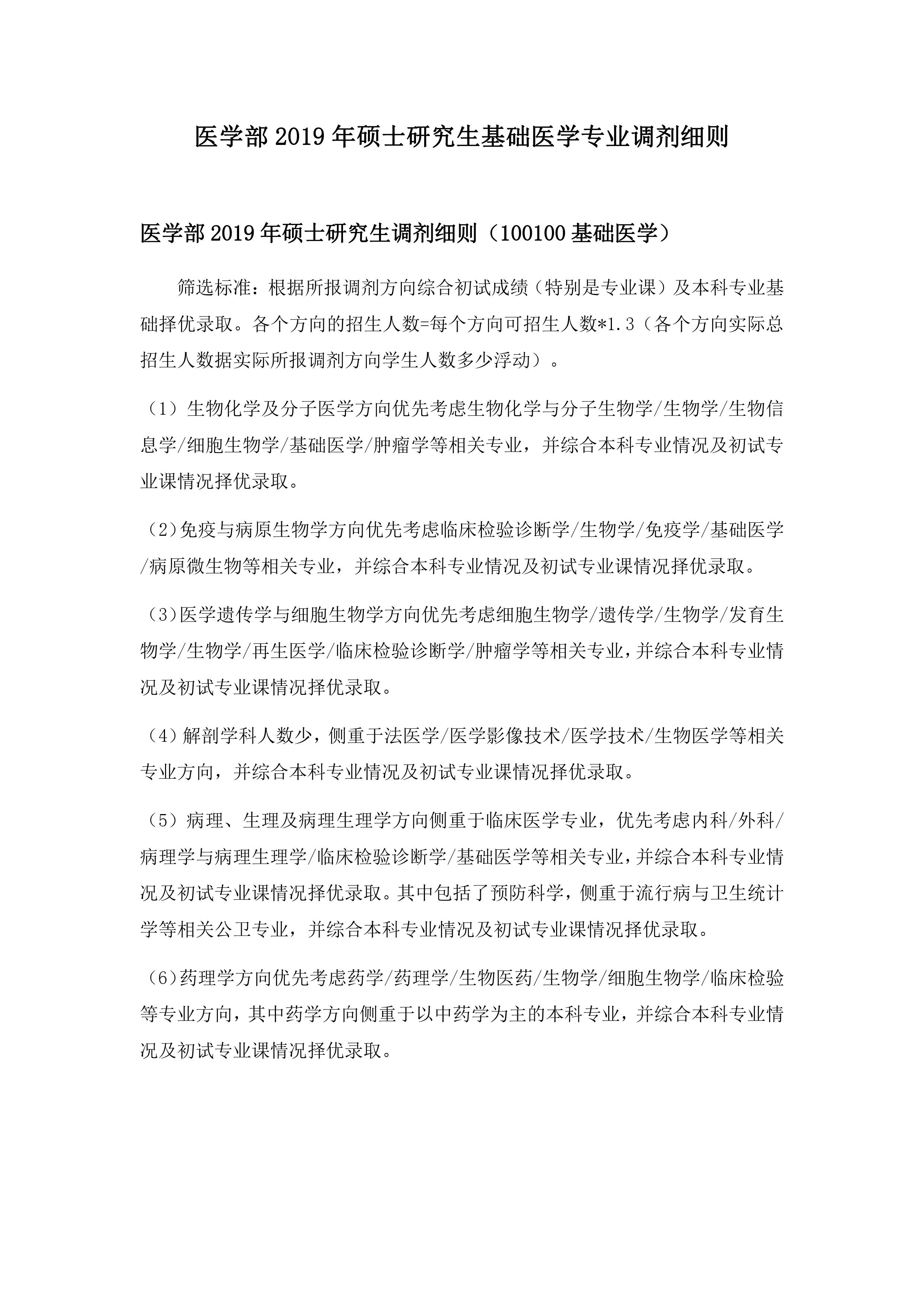 好色tv 2019年硕士研究生基础医学专业调剂细则
