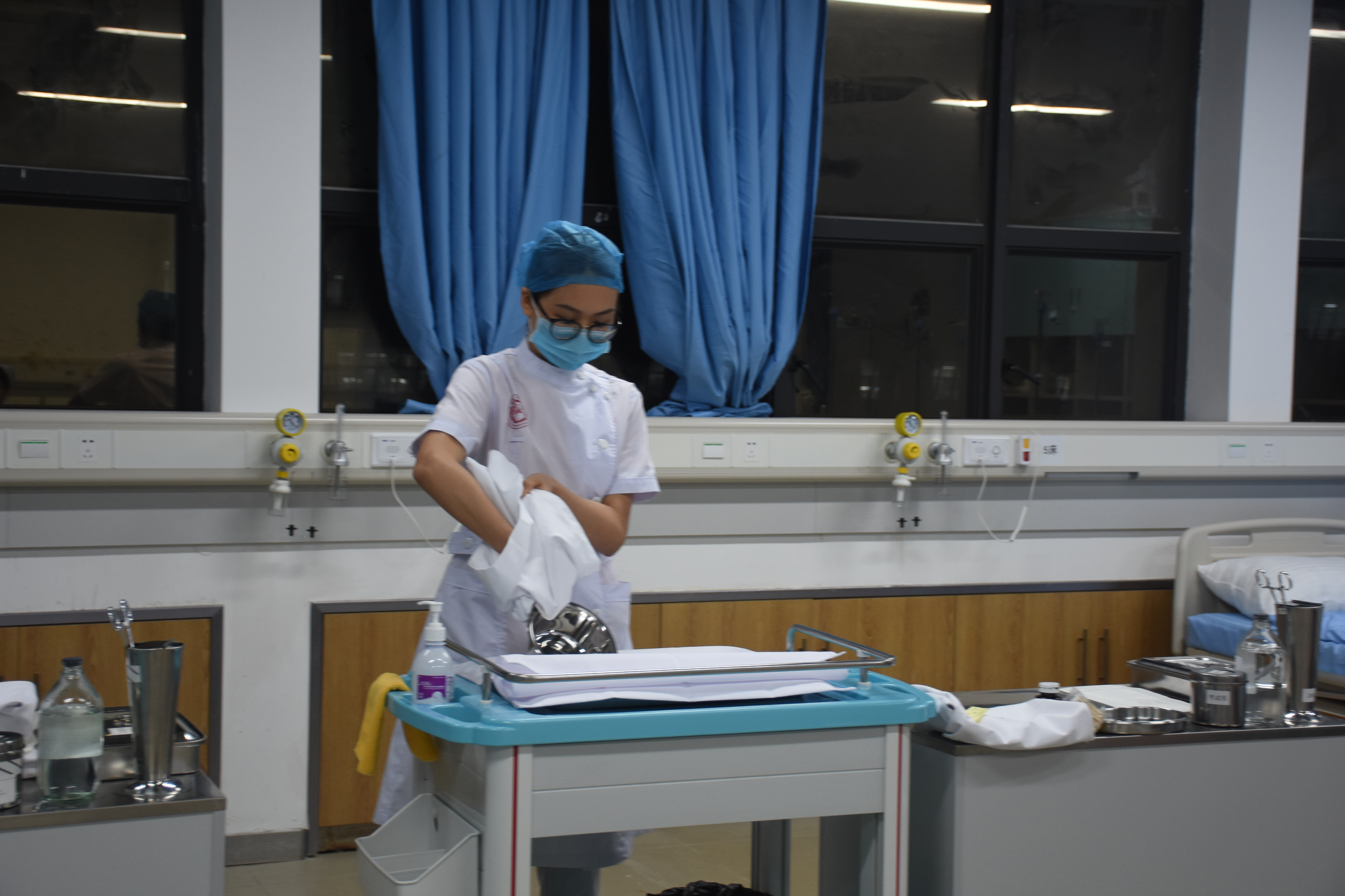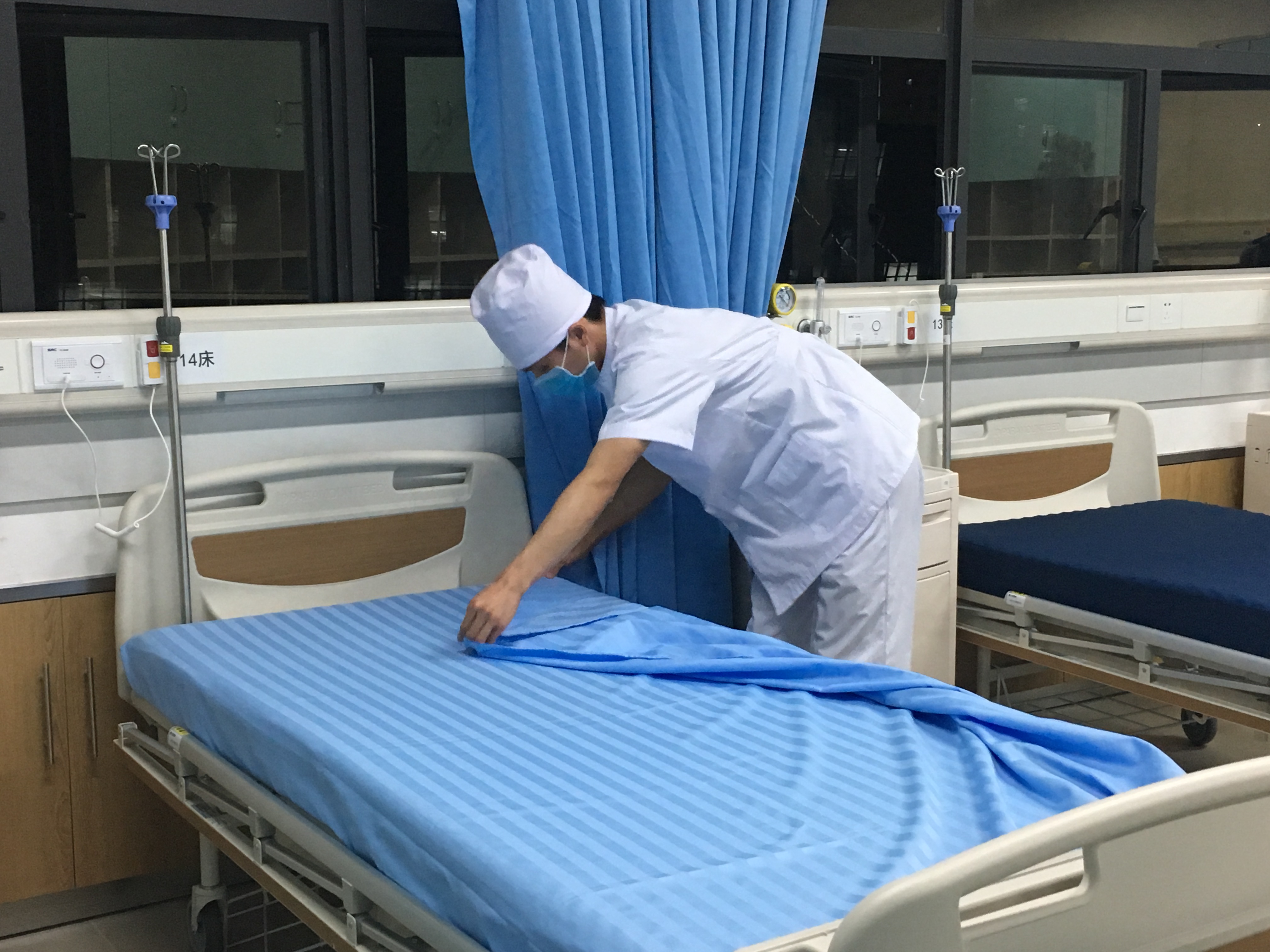本次技能竞赛项目是他们刚学完的无菌操作技术和铺床法两项操作,整个赛事体现了美、精、思的风格。美:选手们穿戴整洁,动作舒展美观,以利落、娴熟的操作手法迅速完成操作。各位选手在竞赛中充分展示了“白衣天使”的仪态美、专业美;精:各位选手态度认真,动作精准、有条不紊,操作娴熟。铺床过程中讲究省力原则,床铺得平整紧致、四角充实, 操作完成质量高。尤其是男选手, 在铺床比赛中脱颖而出;思:此次竞赛既考察选手临床护理技能、无菌意识和质量意识,还考察选手评估突发状况以及应变的能力。在无菌操作技术考核中设置了过期无菌包、污染溶液、打扫地面污染环境等不同情景来考察选手的思维能力、观察能力和应变能力。选手们严格执行查对制度,评估到位,思维严谨,准确及时解决这些问题,操作精准规范。