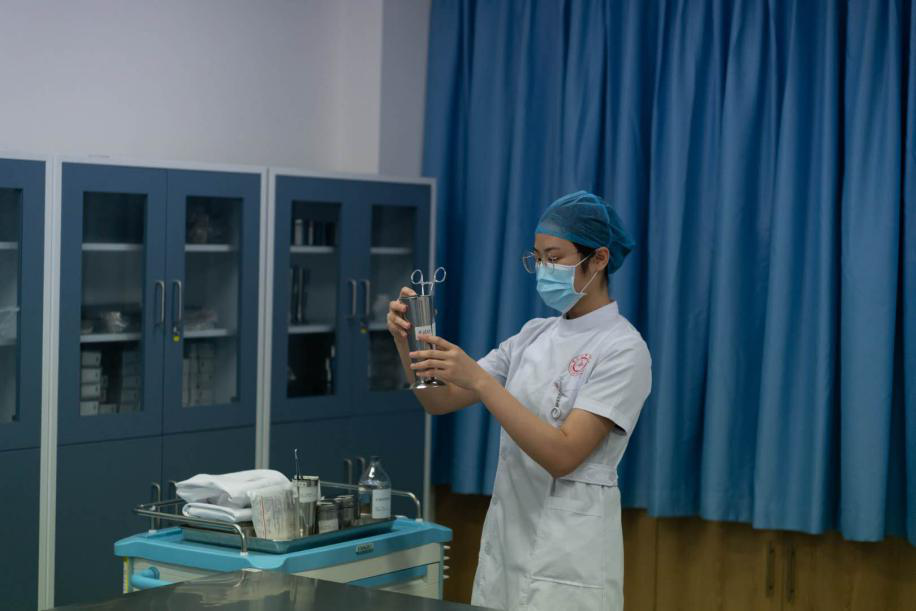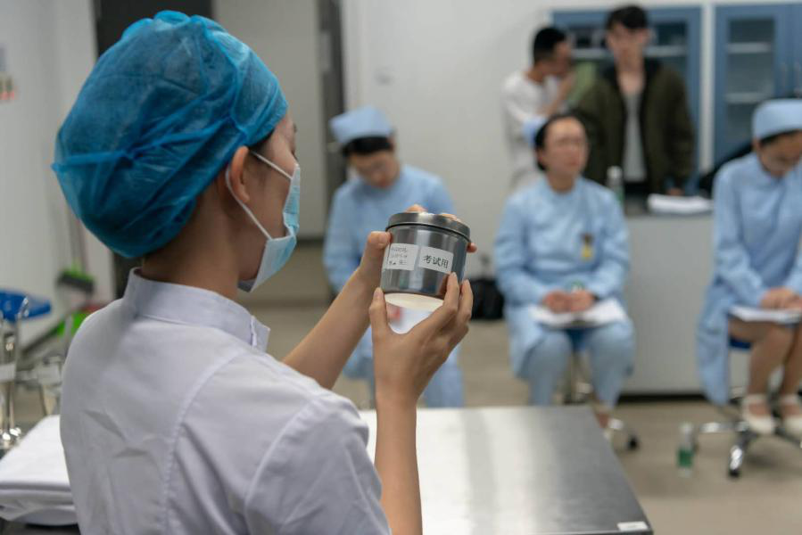 操作时,即便面对众多评委和计时员,选手们依然从容不迫。他们的专注里流露着对操作的熟稔于心。在短短的7分钟里,选手们的无菌操作流畅而细致,不失优雅不失技术。