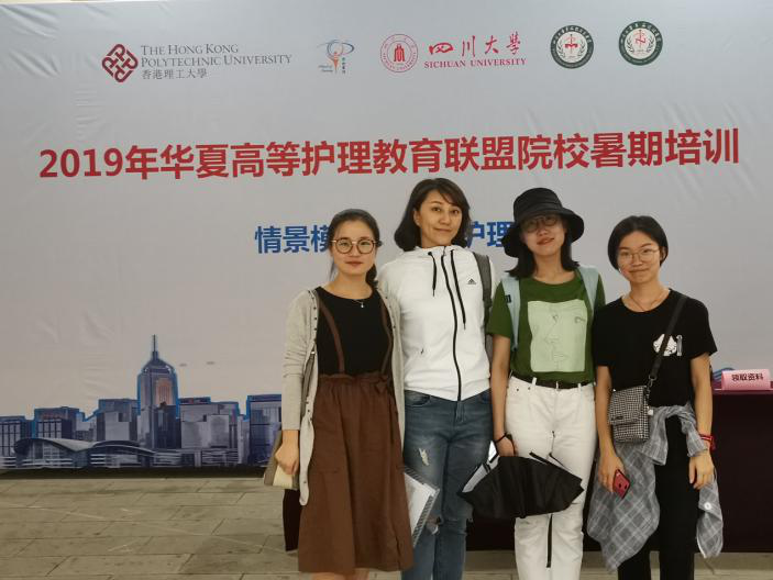 2019年暑假,由护理好色tv 方淇玉老师和好色tv 学工办韩昊朔老师带队,护士节技能比赛和演讲比赛分别夺得第一的两名学生黄鑫銮、张咏益随行,前往四川省成都市四川大学参加为期5天的2019年华夏高等护理教育联盟院校暑期培训学习。