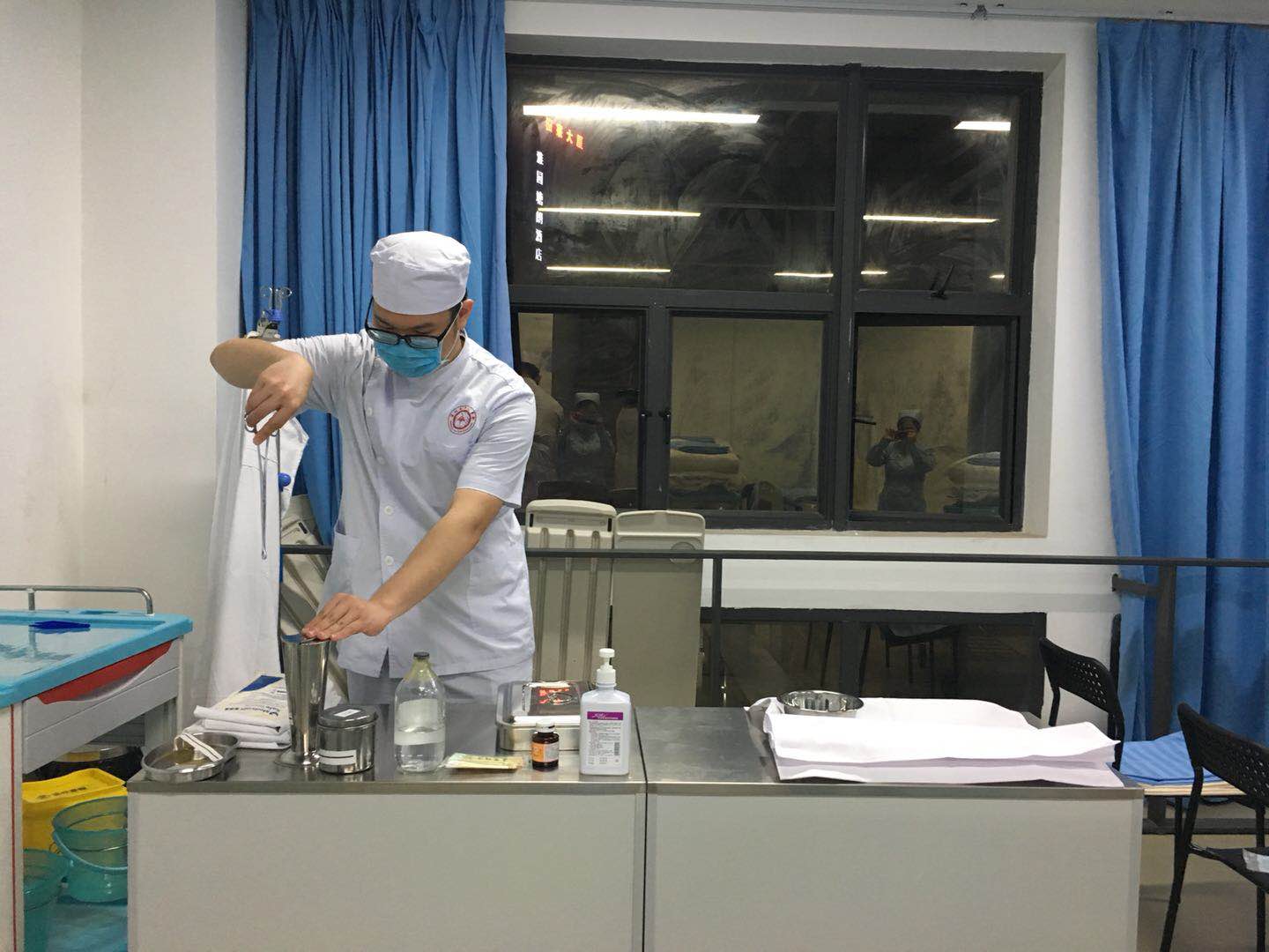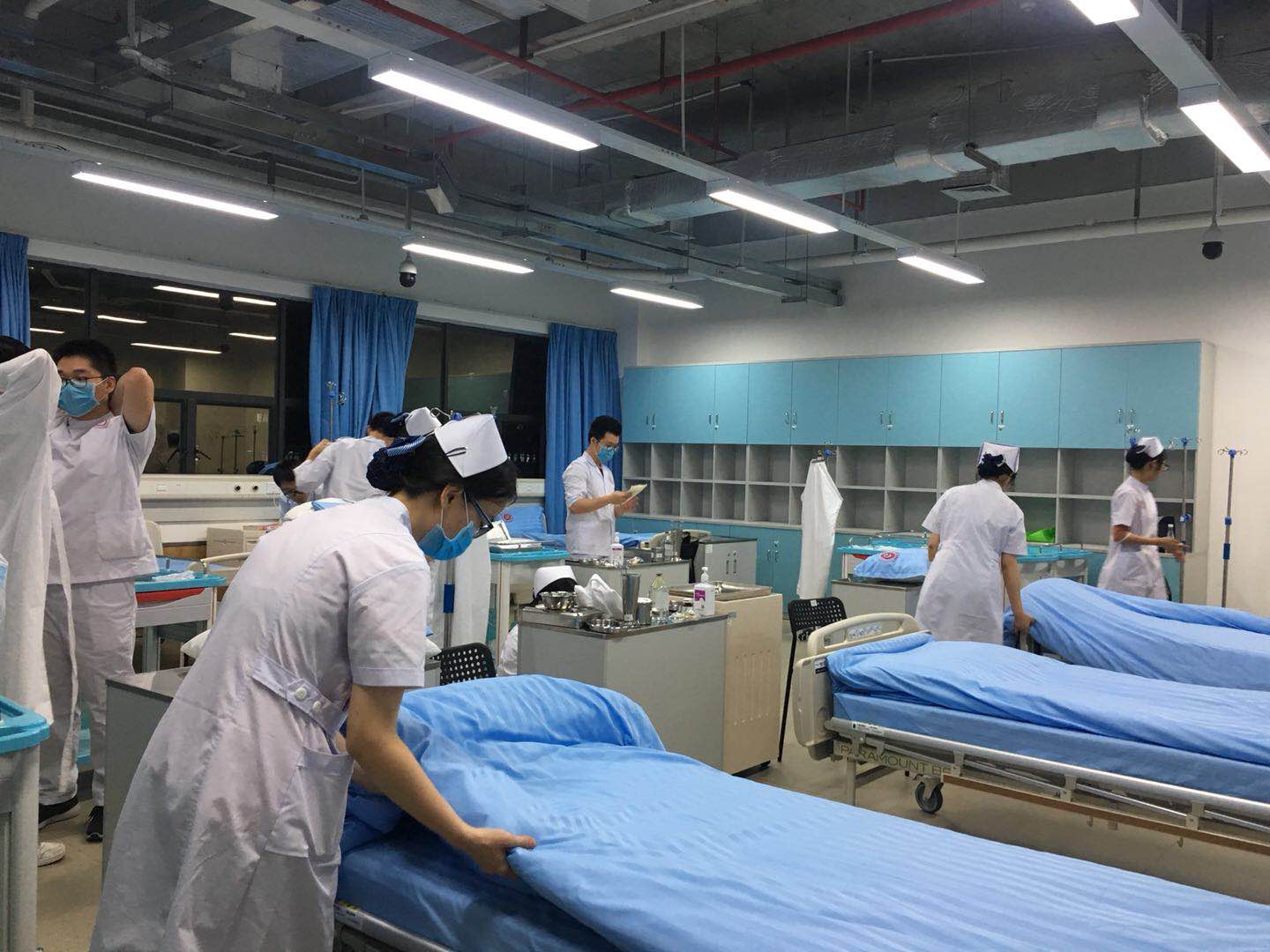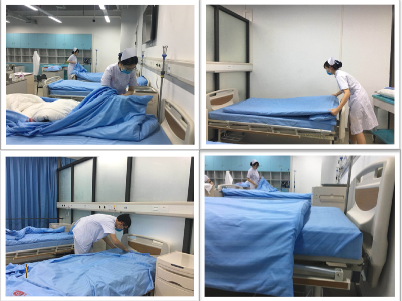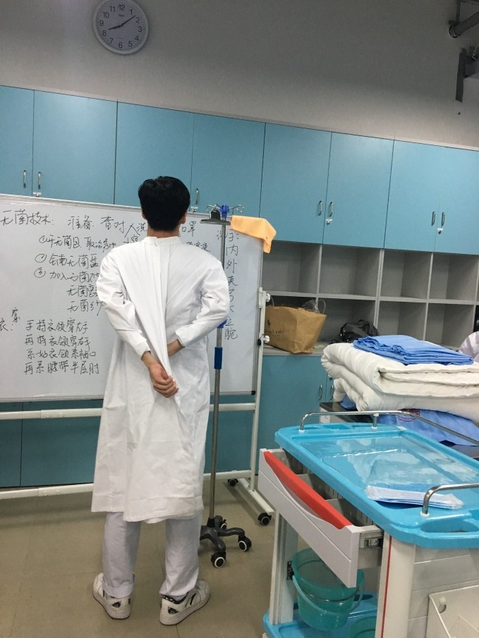 他们穿戴整齐,认真训练,精益求精,不断重复着铺床、无菌技术、穿脱隔离衣等技术操作。在护理好色tv 的老师们的耐心指导下,他们不断地总结经验,力求使自己的技术更加规范熟练。