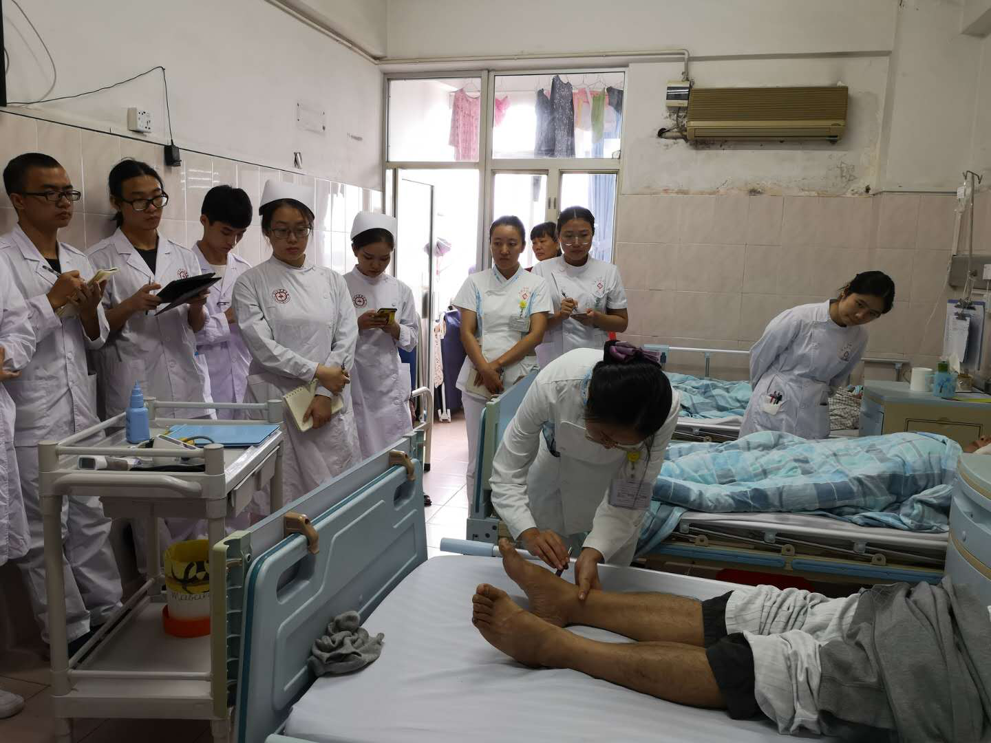此次见习安排了呼吸内科、心血管内科、肾内分泌科及神经内科四个科室,采取临床护理查房的教学方法。教学过程中对典型病例进行专科护理评估查体,包括老年综合征、跌倒、吞咽障碍、失禁等方面的评估,适时提问和引导,让同学们能够对已学知识进行回顾,掌握老年人护理评估的技巧及要点,锻炼其综合应用知识和技能解决临床护理问题的能力。