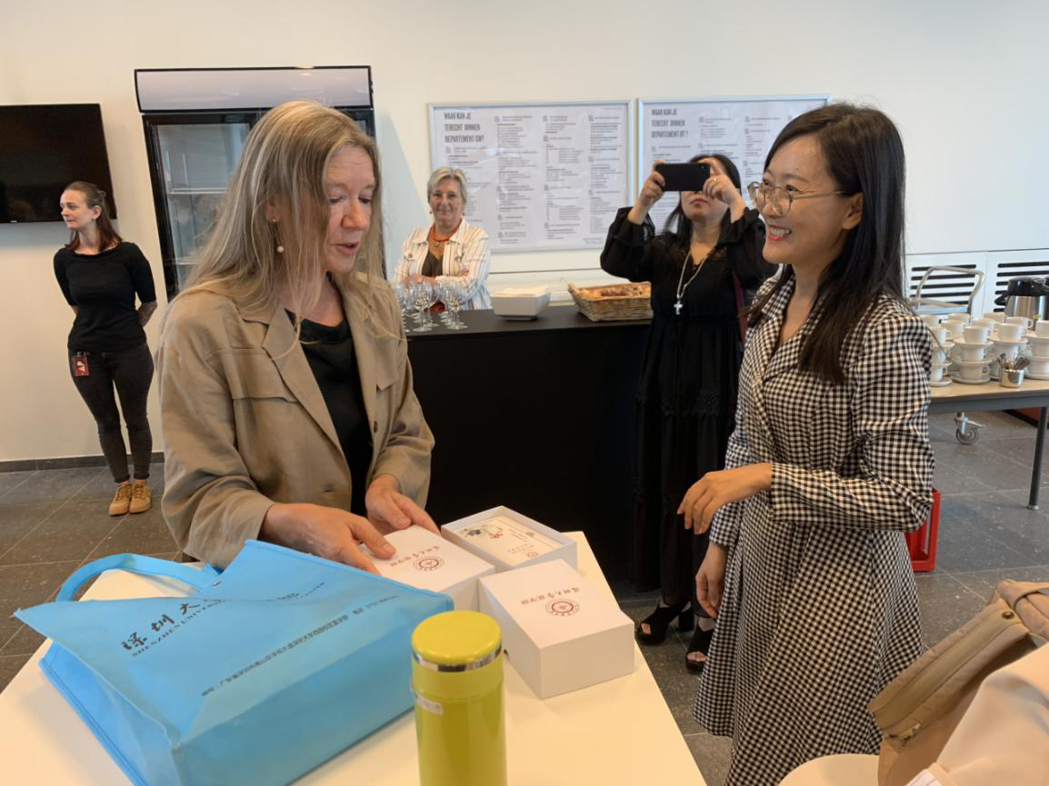 孙丽媛副院长在典礼上对安特卫普大学提供的学习机会表示感谢,并希望同学们能够珍惜这次机会好好学习。同时孙副院长也为Pascale校长送上精心准备的深大文化用品礼物。作为东道主的安特卫普大学也为每一位深大学生精心准备了小礼物以表示欢迎。在急症监护和急救护理部主任Bruno Maertens的带领下,同学们参观了校园的环境及教学的设施设备,帮助同学们更好更快地熟悉和适应安特卫普大学校园生活。