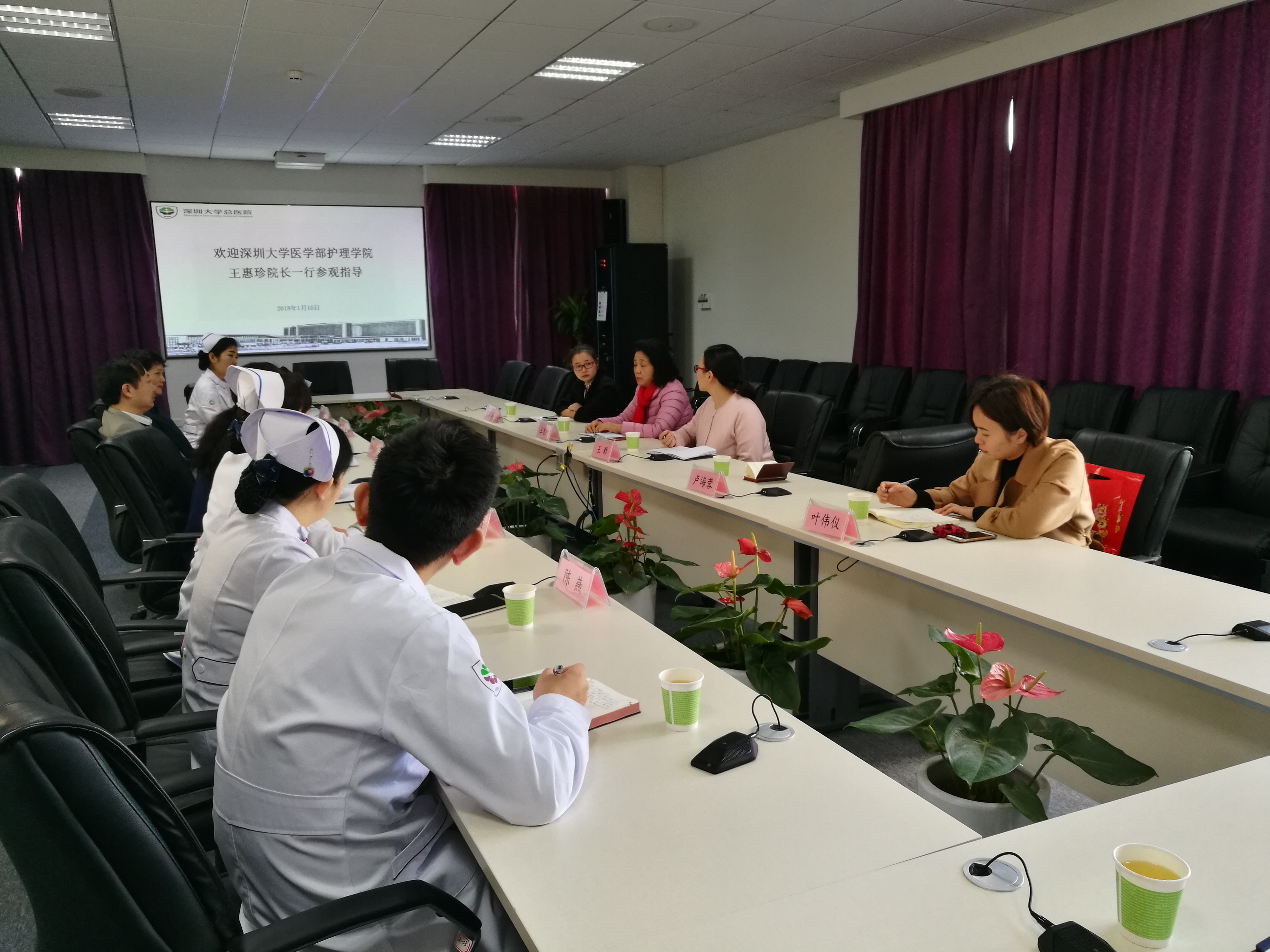 2018年1月16日,好色tv 护理好色tv 院长王惠珍、副教授王群博士,叶伟仪、方淇玉和卢海蓉老师一行5人应邀前往好色tv 总医院参观,与总医院就教学科研等方面如何广泛合作,共建“深大护理”学科进行座谈。