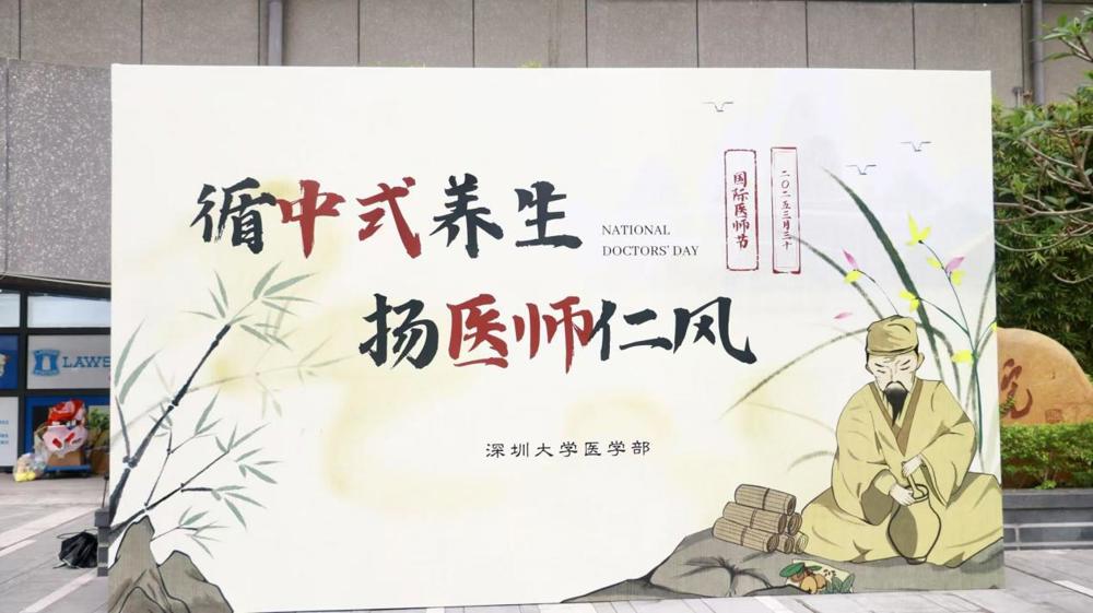 在丽湖校区正义广场举办了以“循中式养生,扬医师仁风”为主题的医师节活动,为师生和医护人员带来了一场充满中式气息的养生派对,不仅呼吁广大师生关注自身健康,同时对医护人员表示慰问,为他们的辛苦付出表达最真挚的感谢。