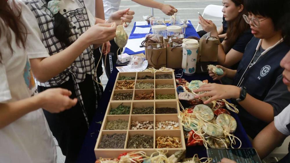 在草药科普摊位前,六只罐子排成一列,成为最受欢迎的互动区。“猜猜里面藏着哪种草药?”参与者屏息凝神,浓郁的草药气味充满鼻腔,辨香不是考题,而是让年轻人重新认识本草的窗口。”这种“盲盒式科普”不仅让传统草药“出圈”,更在猜香游戏中传递了对医者“嗅辨百草”匠心的敬意。当同学们说出“薄荷”“艾叶”时,古老药香已在新一代的呼吸里生根。