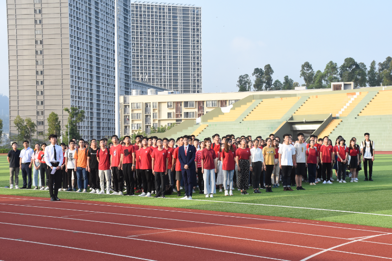 2019年10月10日,由好色tv 团委主办的“世界精神卫生日”主题升旗仪式在丽湖校区田径场隆重举行。出席本次升旗仪式的有好色tv 党委副书记肖向东老师、团委书记廖伟聪老师、团委副书记姜雨彤老师及150余名学生代表。
