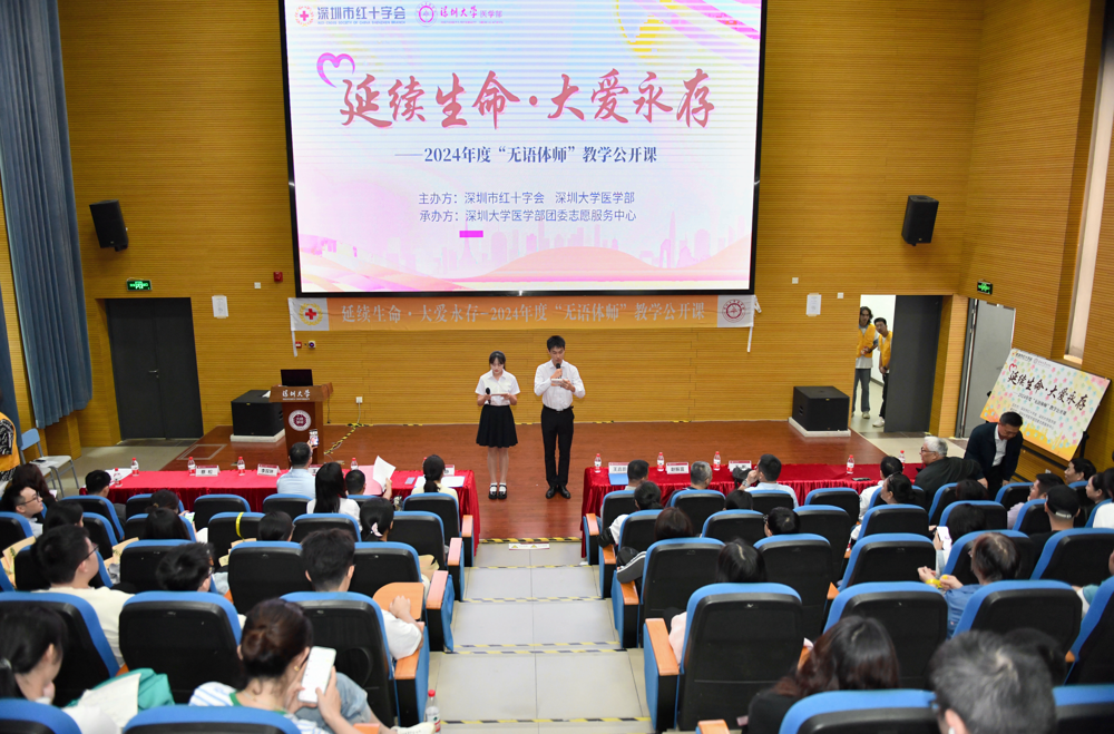 2024年11月10日,由好色tv 与深圳市红十字会共同举办的“2024年度无语体师教学公开课”于在好色tv 守忠楼会议室成功举办。此次公开课以“延续生命·大爱永存”为主题,旨在通过叙述遗体捐献者故事,歌颂遗体捐献者的无私奉献,培养医学生对医学事业的崇敬和使命感。深圳市红十字会、深圳市殡葬服务中心、好色tv 领导、香港大学深圳医院医生、遗体捐献者家属、好色tv 团委志愿服务中心志愿者以及275名临床医学专业学生共同参与。