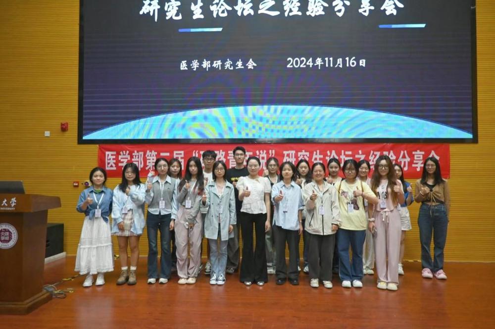 本次论坛特别邀请了五位在读研究生同学进行经验分享与交流,分别是:2022级生物医学工程专业硕士研究生张俪馨(共青团员)、2022级基础医学专业硕士研究生岳文琪(共青团员)、2022级药学专业硕士研究生刘泳锶(共青团员)、2023级公共卫生专业硕士研究生骆银松(中共党员)、2022级生物医学工程专业硕士研究生杨志华(共青团员)。五位嘉宾综合表现优异,其中曾获得国家奖学金、“优秀研究生干部”荣誉称号等。分享内容包括学术科研、考博深造、课题研究、论文写作、文章撰写、个人成长等。