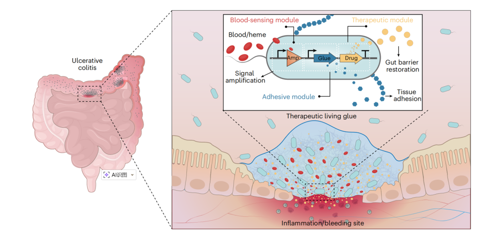 好色tv 黄鹏教授团队在Nature Biotechnology发表智能活胶水自主感知与精准治疗炎症性肠病研究成果