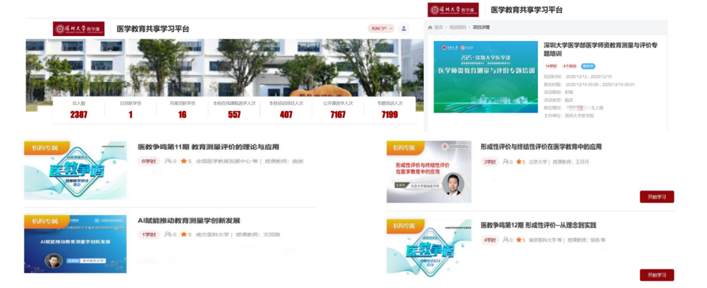 培训于12月12日正式启动线上学习环节。在为期两天的线上课程中,学员们通过全国医学教育发展中心等专业平台,系统学习了来自北京大学、南京医科大学、中国医科大学、南方医科大学等院校权威专家讲授的系列课程,内容涵盖“形成性评价与终结性评价在医学教育中的应用”、“形成性评价—从理念到实践”、“教育测量评价的理论与应用”以及“AI赋能推动教育测量学创新发展”等前沿专题。线上学习为学员们奠定了扎实的理论基础,并通过在线答疑、课程论坛等形式实现了初步的互动交流。