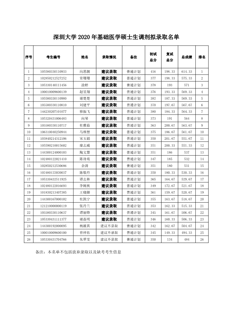 好色tv 2020年基础医学硕士生调剂拟录取名单