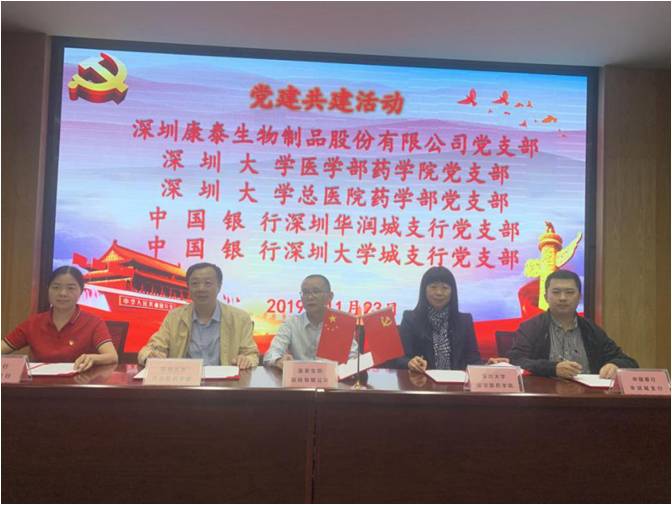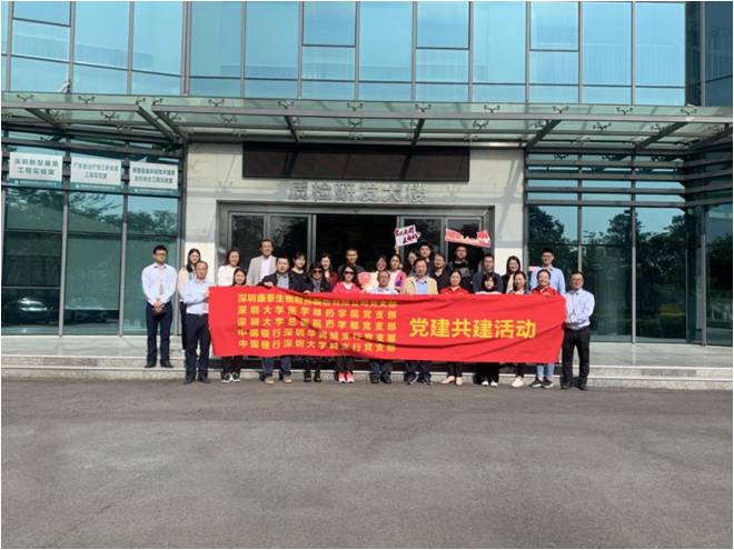 2019年11月23日好色tv 药好色tv 党支部与好色tv 总医院药学部党支部、中国银行深圳华润城支行党支部、中国银行好色tv 城支行党支部、深圳康泰生物制品股份有限公司党支部等五个党支部举办了支部党建共建活动。药好色tv 党支部参加此次活动的人员有焦亚斌、王晓娟、毛文哲、江建冰、许特、许晨舒、杨灵芝、李颖、张娇娇。