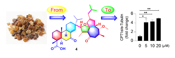 大自然是富有创造力的实验室,“植物是自然界的第一生产力”。植物树脂作为化学防御物质已经引起科学界的广泛兴趣。没药作为树脂类中药,分布于热带和亚热带的索马里、埃塞俄比亚及阿拉伯半岛南部等地,经古丝绸之路传入中国。该研究团队长期从事树脂类中药研究,受仿生学和中医药理论启发曾经从没药中发现了具有肾脏保护、脂质调节及促进脂肪干细胞分化作用的新型萜类化合物或它们的二聚体(Org Lett 2017, 19: 286-289; Org Lett 2018, 20: 2220-2223; J Org Chem 2018, 83: 2725-2733; Org Chem Front 2019, 6: 3825–3833,封面文章)。然而,没药是一个“取之不尽”的宝藏,在后续的接力研究中,研究团队又从中分离鉴定了一系列新骨架倍半萜类及其与二萜的异二聚体,在“活血化瘀”功效启发下,继而发现它们的脂质调节作用,为开发可能与他汀类药物作用机制不同的降脂药物提供了新选择。该论文近日于Organic Letters在线发表(原文链接://doi.org/10.1021/acs.orglett.0c00898)。程永现教授为本论文的通讯作者,硕士研究生朱思思、刘家旺及药好色tv 晏永明研究员为论文的共同第一作者。
