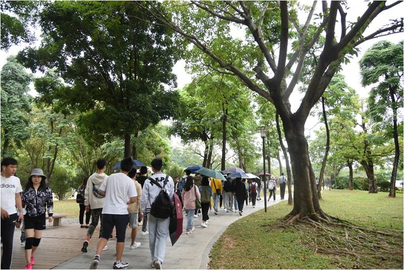 10月24日上午八点,药学一班的同学们在校门口集合完毕,一起乘坐公交车和地铁前往深圳莲花山公园。在深圳方便快捷的交通系统的支持下,同学们很快就到达了目的地。早晨的微微细雨并没有打搅同学们出行的兴致,不远处的莲花山绿树成荫,游人如织,天空中飞舞着游客们放起的各式风筝……一派派和乐安宁的景象吸引着同学们前去游赏。林叶窸窣,鸟雀啁啾,大家说笑着,迎着饱含草木气息的湿润微风,和其他年老或年少的游客们一起朝着山顶进发。